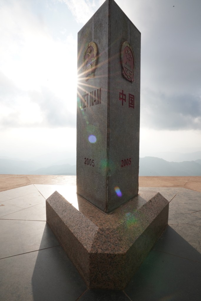 Nhưng khi lên tới nơi thì bao nhiêu mệt mỏi tan biến. Cột mốc số 0 sừng sững trên đỉnh trời, có ba mặt tam giác đại diện cho Việt Nam – Lào – Trung Quốc. Đây là ngã ba biên giới chính thức được ba quốc gia thống nhất cắm mốc vào ngày 27/6/2005. Từ trên nhìn xuống, núi rừng bao la hùng vĩ, gió thổi phần phật, nắng chan hòa – đẹp đến ngợp cả tim.