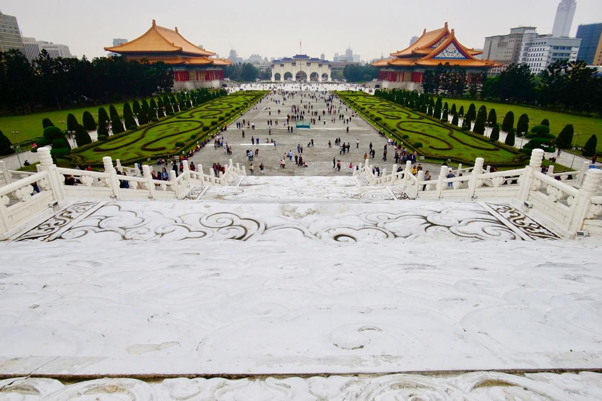 Ăn xong thì trời cũng đã dịu nắng, nên gia đình mình bắt đầu đi dạo ở quảng trường Tưởng Giới Thạch – một khoảng không rộng rãi, yên tĩnh giữa lòng thành phố. Ba toà kiến trúc lớn nằm đối xứng nhau: Nhà tưởng niệm, Nhà hát Quốc gia và Phòng hòa nhạc Quốc gia. Nếu đến vào mùa xuân, nơi này rực rỡ trong sắc hồng của hoa anh đào.