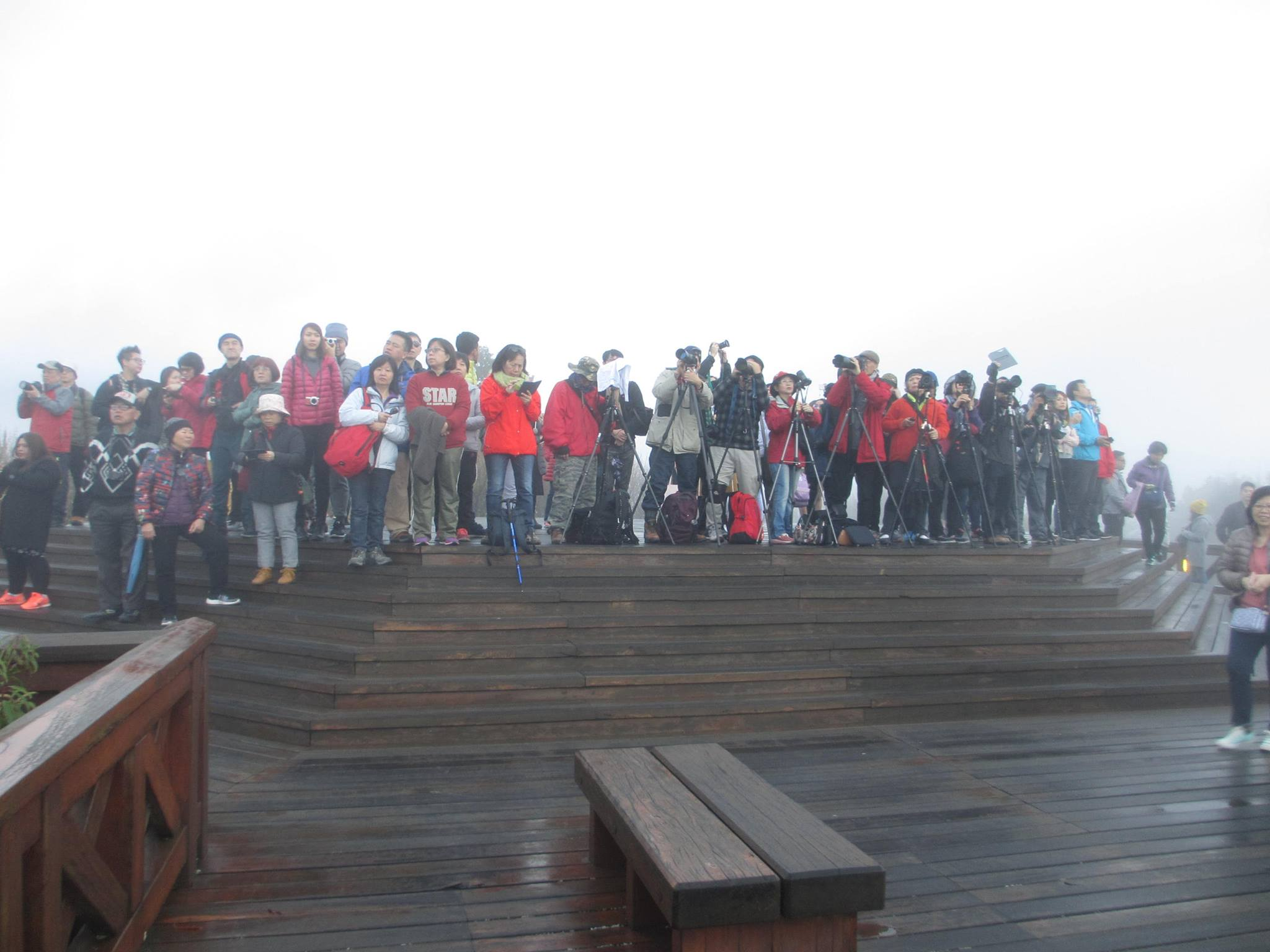 Mình còn giữ tấm hình ghi lại hàng dài chân máy sừng sững trong màn sương – như thể tất cả đều đang chờ điều gì đó thật thiêng liêng. Mà rồi, mặt trời lên lúc nào không ai hay. Sương không tan. Không một tia sáng lọt qua được màn mây trắng mù mịt.