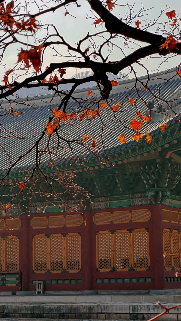 Nó kể về một thời kỳ đầy biến động, về những nỗ lực hiện đại hóa không thành, và về cách người Hàn Quốc hôm nay đang trân trọng rồi “làm mới” di sản của họ qua những nhân vật bánh quy nhỏ bé. Chúng tôi rời khỏi Deoksugung khi hoàng hôn bắt đầu buông, dưới cái nắng những chiếc lá khô trở nên đỏ rực cứ tưởng như mùa thu vẫn còn lại ở đây vậy, nhưng thật ra đang là 3*C rồi – những ngày “ấm” hiếm hoi khi chúng tôi đi khắp Seoul & Busan trong mùa đông này.